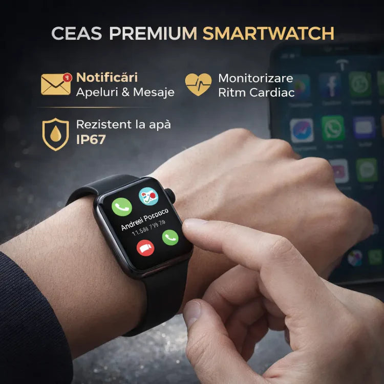 Se conectează prin Bluetooth la telefonul tău și îți arată notificări, apeluri și mesaje direct pe ceas.